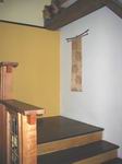 I am long remiss in showing you what Aunt Bernie sent us after the Uber Moms' visit last year. Actually, I've only just found the right hangers for them, so it's not that long since they've been hung. She sent us two beautiful obis, one black and one gold. We have them hanging in the main stairwell area: