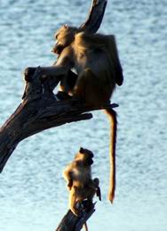 We stopped for a “sundowner”, the traditional safari drink and snacks as the sun sets. We saw a troop of baboons - some were sitting and grooming one another, but there were a dozen or so that were hanging off of the branches of a dead tree - a true "Jungle Gym".