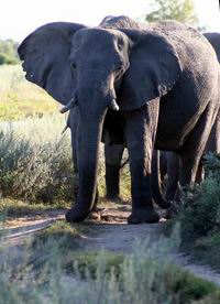 We saw tons of ellies, almost giving Muchenje a run for number of pachyderms. We came across two bulls coming down to the water to drink. The first fellow was completely unimpressed by us but his younger companion was more than a little aggitated. After much stomping and sniffing and flapping of ears, he finally got his drink.