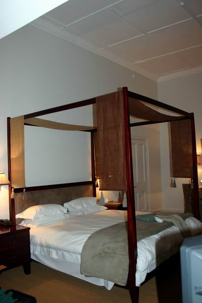For mains I tried the Springbok Wellington, a Springbok filet with a mushroom crust, encased on a puff pastry and served with caramelized onions and green beans. Gary had the grilled ostrich steak. We also had a bottle of Robertson Merlot with our meal, which was pleasant but nothing too special. While we found the food tasty, we weren’t overwhelmed. It seemed a bit more flash than substance, but we were also still a bit put off by the table we were given. Still, the total for the meal including wine and tip was less than US$100.00 and a bargain by comparison. We called for a cab and went back to the hotel. There was another note from Corinne wondering if we had gotten her first message, so I called her and confirmed my appointment for 8:30 in the morning.