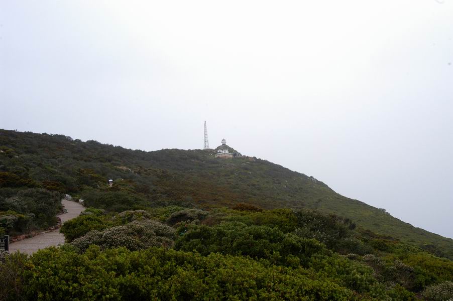 But we made it, checked out the tins of impala, kudu, and ostrich pate at the gift shop and continued up to the lighthouse. It was a shame that it was overcast as we couldn’t see much. The funicular was working on the way down and we had a brief stop for the obligatory photo with the Cape of Good Hope sign. We headed north along False Bay where the water was much calmer.