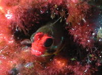 Quick break and then back to "Dirty Rock" for our last dive. In retrospect - current, surge, bitch weeds, I lost John, and impaled my thigh on a sea urchin - should have stayed on the boat. John swam off into a school of jacks and I couldn't find him again. I let Mario know he was MIA and he surfaced to let Joser know to look for him. After 15 minutes or so, John returned - he had gotten caught in the current and went up to the surface. Joser picked him up and dropped him back in the water where we were. While I was looking for John, the surge slammed me into a ledge and I looked down to see a three inch urchin spike sticking out of my thigh - nice. It stung a bit, but not too terrible. Nice hole in the wetsuit, though. We all went into shallow water and drifted looking for mobulas, but no go.