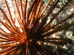 Back on board, Andrew had made a little snack - enormous chocolate chip cookies, about the size of a flattened softball. He calls them "Neutral Buoyancy Bickies" - meaning that if we eat enough of them we won't need additional weights to achieve neutral buoyancy underwater. The boat moved again to "The Arches" - pretty dive with two nice swimthroughs and lovely walls. A bit surgy at the end, though. Gary found a tiny crinoid shrimp - a crinoid is a type of starfish, and the crinoid shrimp live on their feathery arms, blending in by adopting the same color.