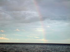 The engines started around 5:30 and we moved to the middle of the channel. We got a nice view of the volcanos, including "Father", the smoking one, and a lovely double rainbow over the channel.