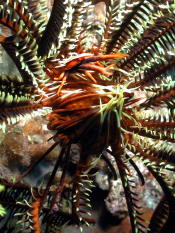 Breakfast was highlighted by my dropping a pat of melting butter in my journal - yea. The AC in my room was icing over, so they are working on it. Second and third dives were at "Midway Reef." Went down to see a red anemone at 75 feet and while I was looking at it spotted a young white tip shark under a ledge trying NOT to be seen. Huge schools of batfish - they are so unafraid of divers that I petted one.