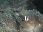 Next dive was at Shaggy's Reef. Nelson put down a bait bucket - a ventilated lidded bucket filled with fish heads - to bring the sharks in. It worked a little - one silvertip was enticed. Jayne also found a nice anemone with a baby anemone fish smaller than my pinkie nail. After a rest, we moved further down to South Shaggy. A bait bucket was put down and we again had one interested party - Ed even had a head-on collision between shark and video camera! There were also several nice nudebranchs on the reef.