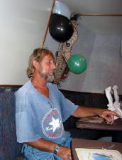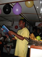 Alan Raabe, the owner of Febrina, had just returned from a dive show in Russia, so he joined the group for dinner, which was a barbecue with steak, chicken, fish, salads and side dishes. Fred made an amazing come-back from his afternoon drunken haze to read a lengthy poem he wrote for the crew - it was really very good and the crew appreciated it.