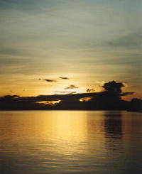 We did a very shallow afternoon dive - it would have been nice but there was quite a bit of surge, so it made it difficult to see much. It was a pretty area though and the sunset was lovely. We had a nice vegetarian dinner with spinach in phyllo as the main course - very nice. The Unterwasser Yidden group had a swearing in ceremony for Joel, and all of the guys had to cover their heads and Joel had to repeat the UY vow, "I will not pish in my wetsuit, I will eat no other fish but gefilte fish..." Much cheering and laughter.