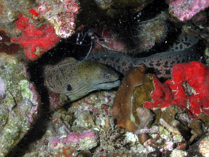 Moray Eel with Cleaner Shrimp - GAL Photo